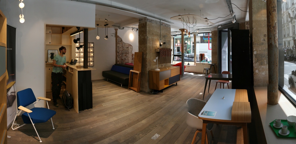 La boutique Blou#2 s’installe dans un local commercial entièrement réhabilité. Le parti pris esthétique est la valorisation des matériaux élémentaires de la construction : la pierre, le bois, le zinc et leurs modes de mise en œuvre. A la devanture en zinc anthracite à joints debout s’oppose un intérieur lumineux et chaleureux offrant un large regard sur les rues adjacentes à travers les vitrines. L’architecture reste minimaliste et intemporelle afin de servir au mieux la sélection d’objets et de mobilier.